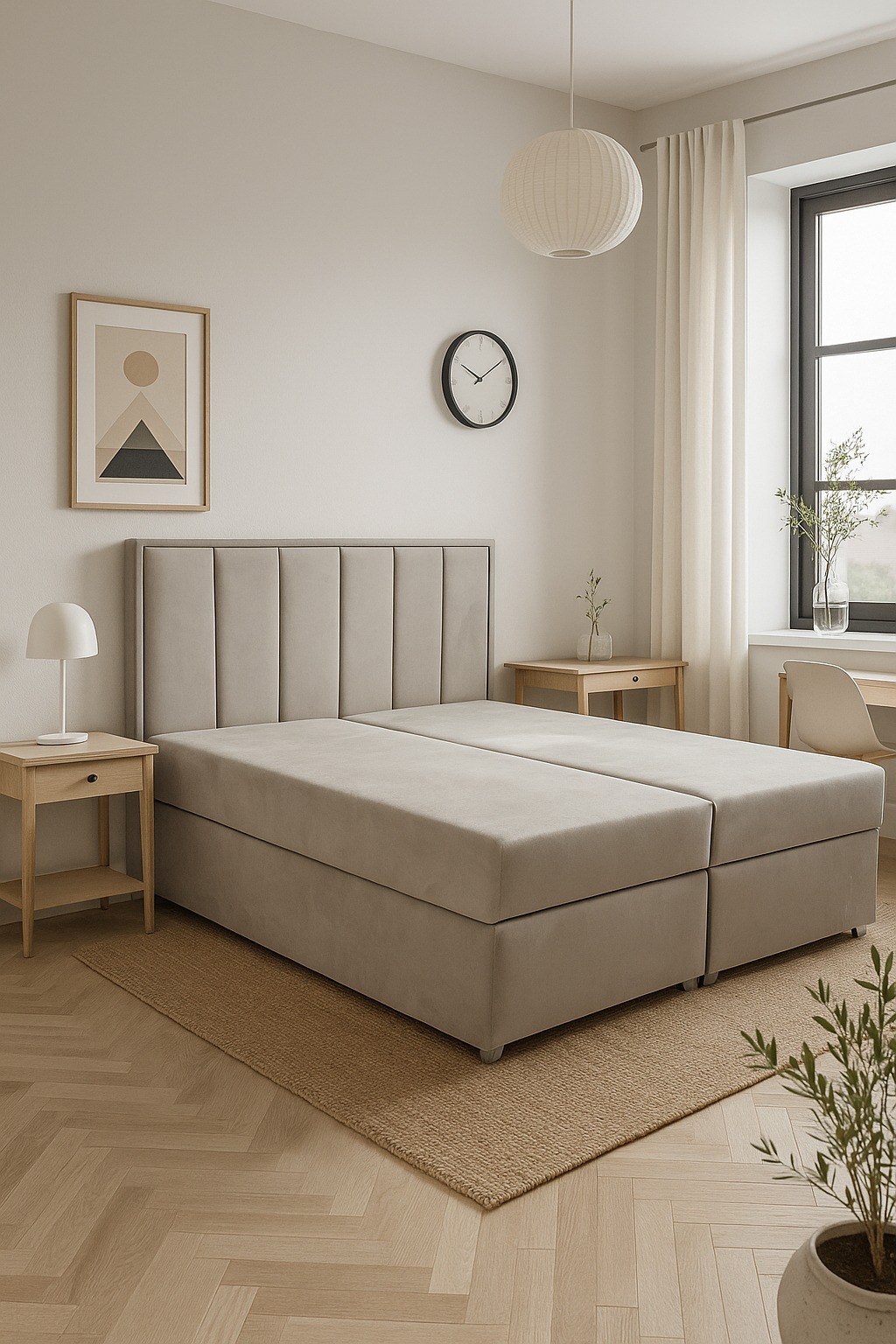 Łóżko kontynentalne NELL  wyposażone zostało w podwójny pojemnik na pościel oraz wygodną kanapę która pozwoli Ci się odprężyć po całym dniu. Panelowe, wysokie wezgłowie to nie tylko ozdoba łóżka, ale służy również jako podparcie dla Twoich pleców. Solidny, drewniany stelaż  daję gwarancję stabilności konstrukcji. Jakość materiałów użyta podczas produkcji stoi na najwyższym poziomie. Dostępne w  różnej kolorystyce. Spraw sobie odrobinę luksusu i wyposaż swoją sypialnie w łóżko kontynentalne NELL .