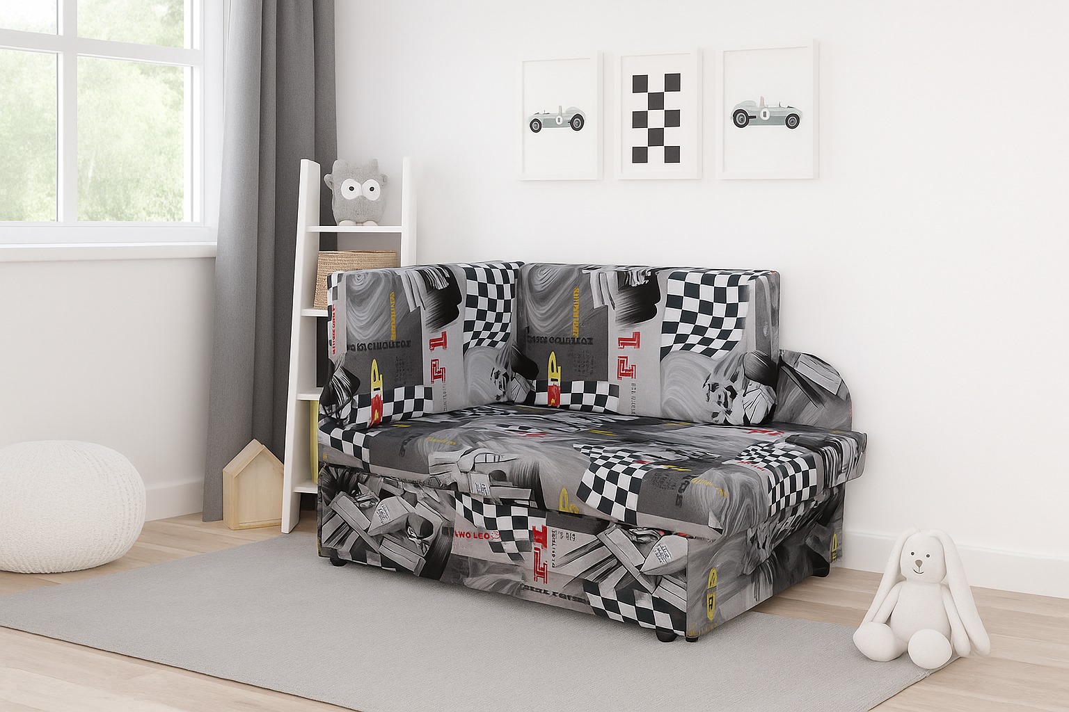 Sofa dziecięca Kubuś w białe wyścigówki dla chłopca